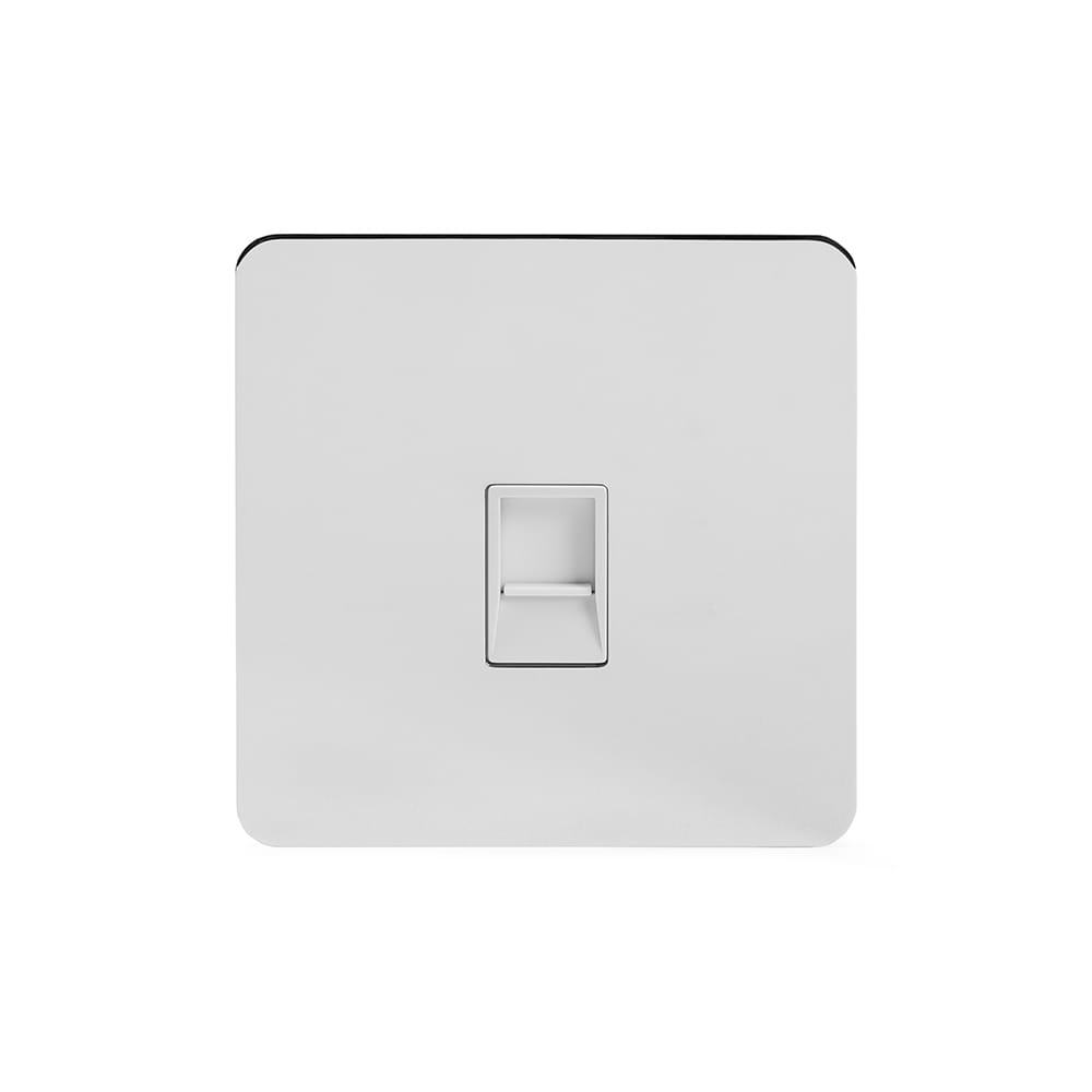 The Finsbury Collection Polished Chrome Flat Plate 1 Gang Data Socket RJ45 Ethernet Cat5/Cat6 Wht Ins Screwless