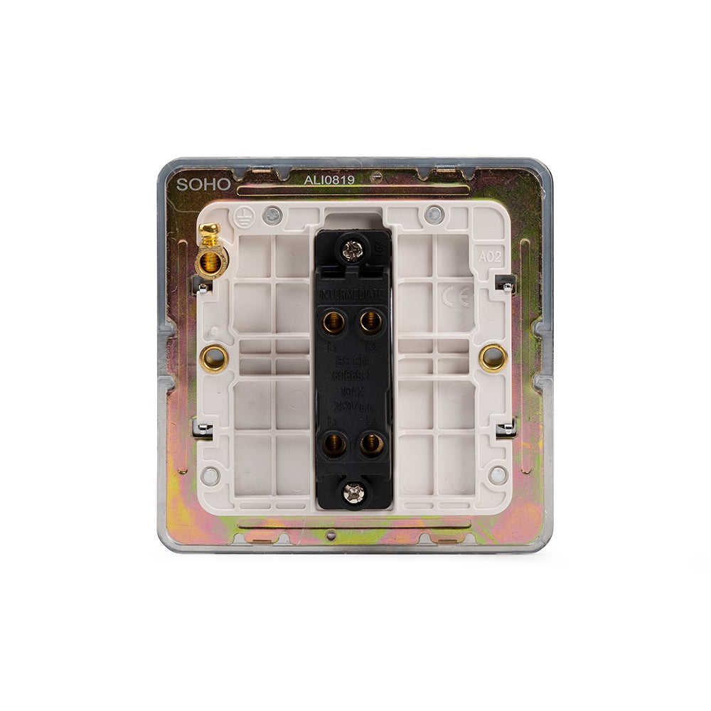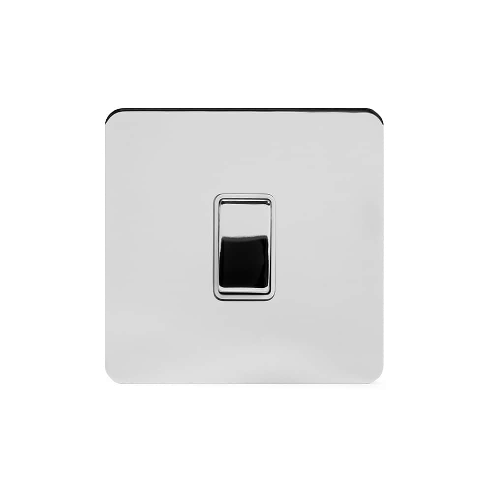 The Finsbury Collection Polished Chrome Flat Plate 1 Gang Intermediate Switch Wht Ins Screwless
