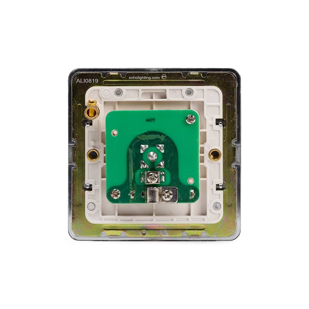 Polished Chrome is generally considered to suit modern/contemporary styles. However, this Screwless Polished Chrome Flat Plate 1 Gang Satellite Socket with white insert from Soho Lighting also complements period styles such as art deco, arts and crafts and other homes of distinction. It looks particularly striking when set against darker finishes, wood or panelling. The Finsbury collection is a popular choice for bathrooms and kitchens as it often harmonises with other polished chrome fittings, such as taps, towel rails or appliances.