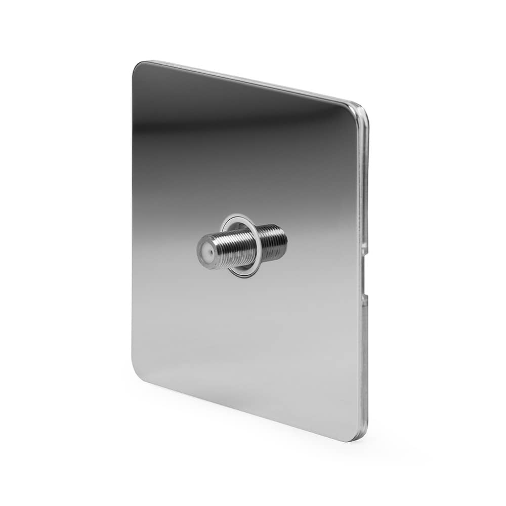 The Finsbury Collection Polished Chrome Flat Plate 1 Gang Satellite Socket Wht Ins Screwless