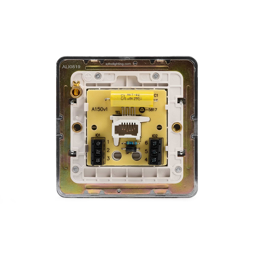 The Finsbury Collection Polished Chrome Flat Plate 1 Gang Telephone Master Socket,BT Wht Ins Screwless