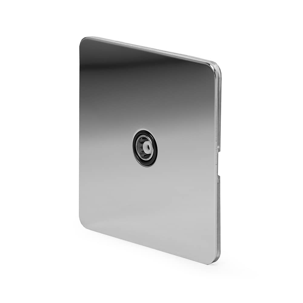 The Finsbury Collection Polished Chrome Flat Plate 1 Gang TV Aerial Socket Blk Ins Screwless