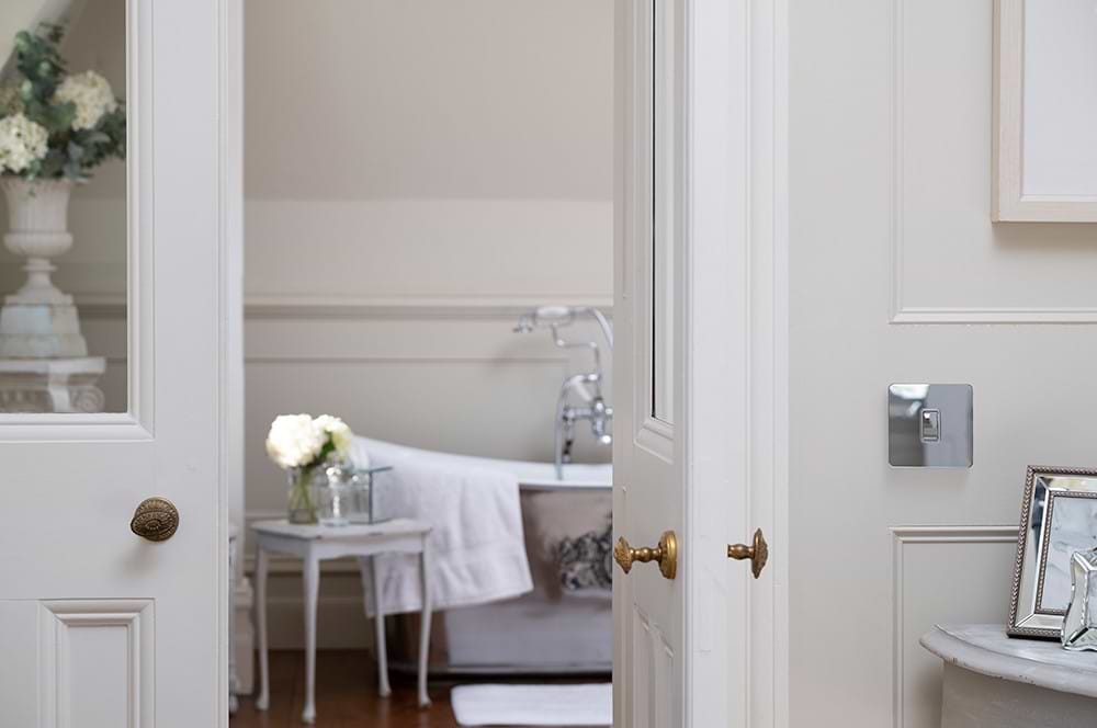 Polished Chrome is generally considered to suit modern/contemporary styles. However, this Screwless Polished Chrome Flat Plate 10A 1 Gang 2 Way Switch with white insert from Soho Lighting also complements period styles such as art deco, arts and crafts and other homes of distinction. It looks particularly striking when set against darker finishes, wood or panelling. The Finsbury collection is a popular choice for bathrooms and kitchens as it often harmonises with other polished chrome fittings, such as taps, towel rails or appliances.
