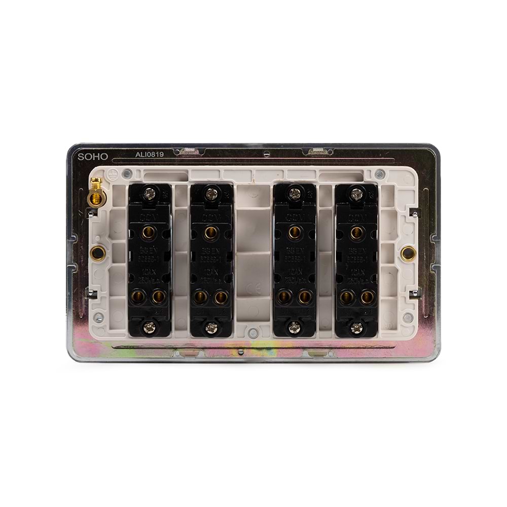 The Finsbury Collection Polished Chrome Flat Plate 10A 4 Gang 2 Way Switch Wht Ins Screwless