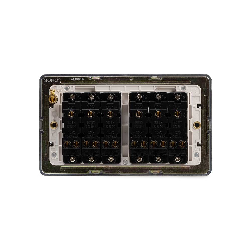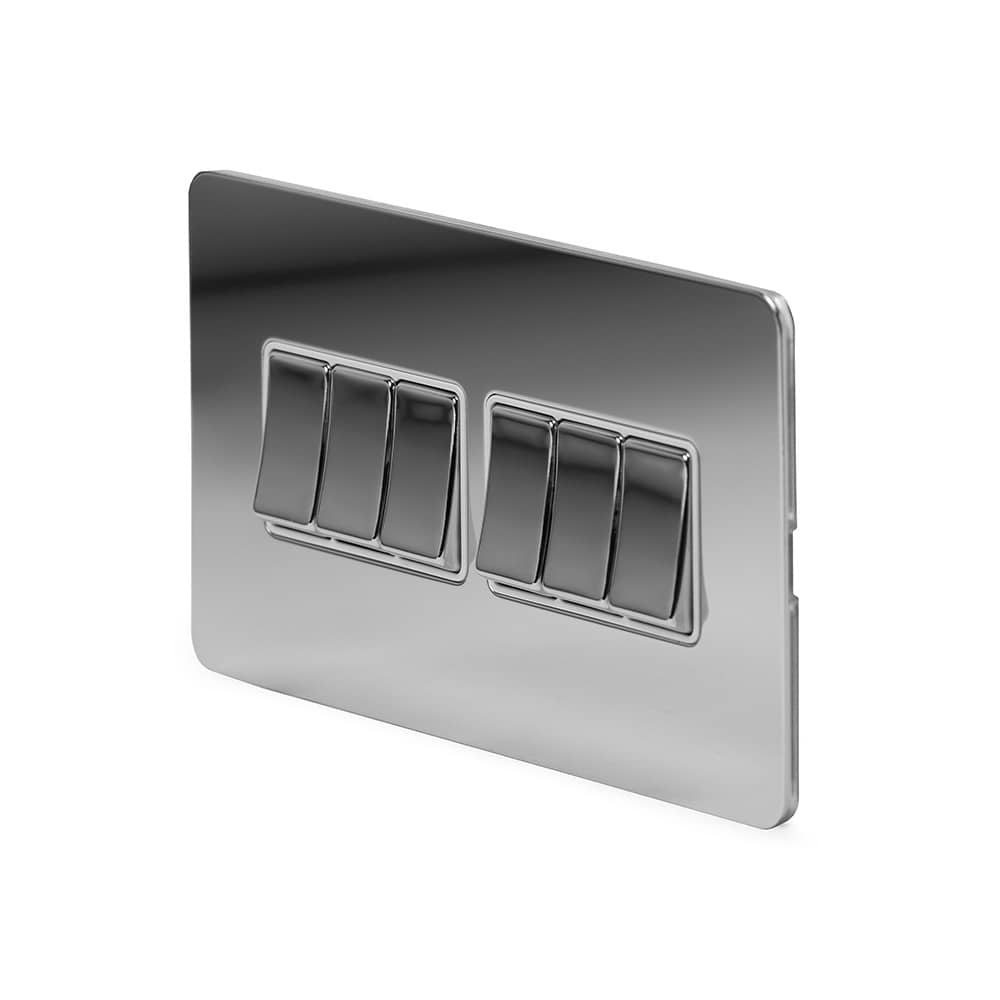 The Finsbury Collection Polished Chrome Flat Plate 10A 6 Gang 2 Way Switch Wht Ins Screwless