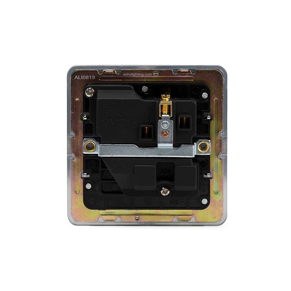 The Finsbury Collection Polished Chrome Flat Plate 13A 1 Gang Switched Socket Double Pole Blk Ins Screwless