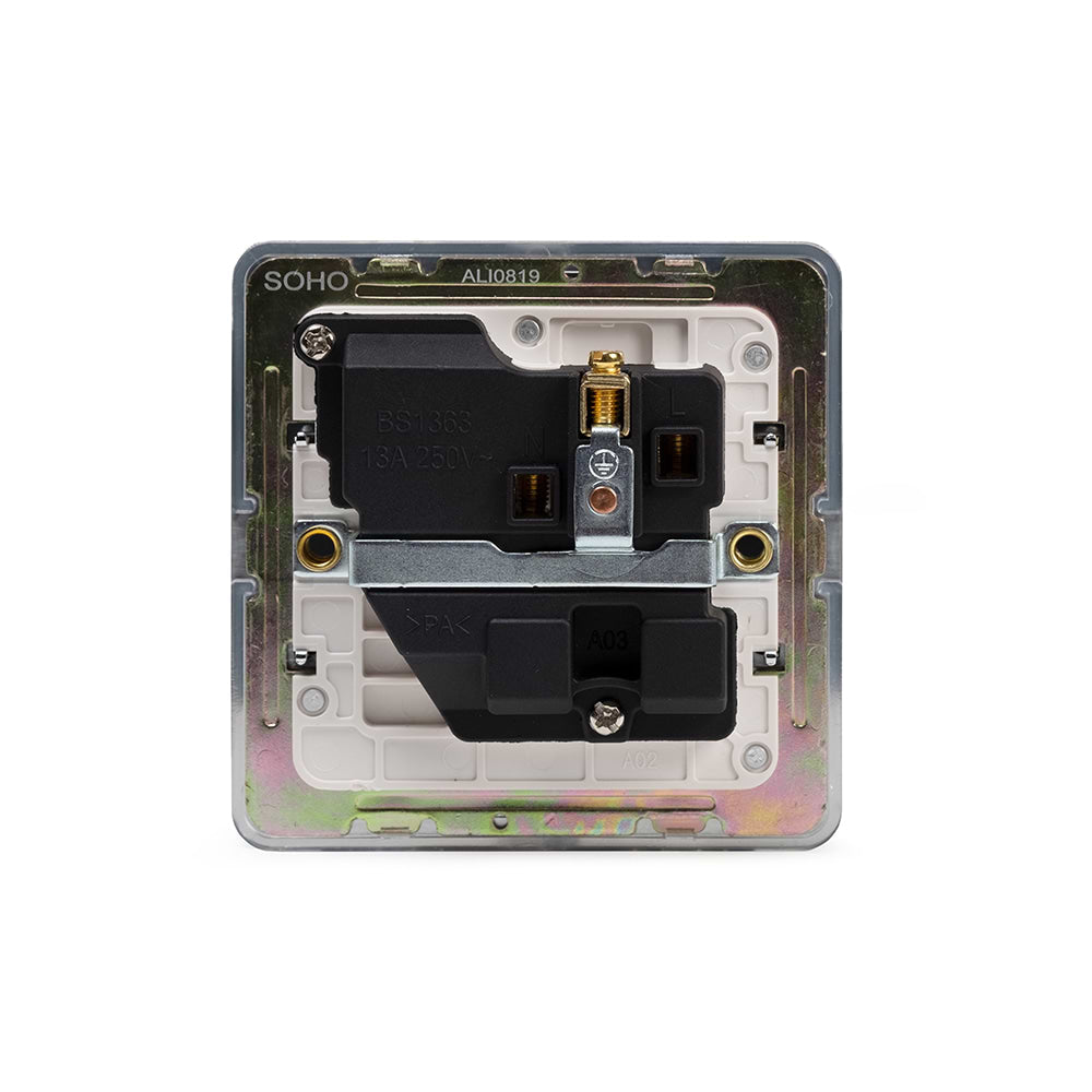 This is a commonly used, regular socket for normal appliances. A 13A socket is a standard domestic 3 pin (live, neutral, Earth) power socket for UK appliances including table/floor lamps, chargers and more.