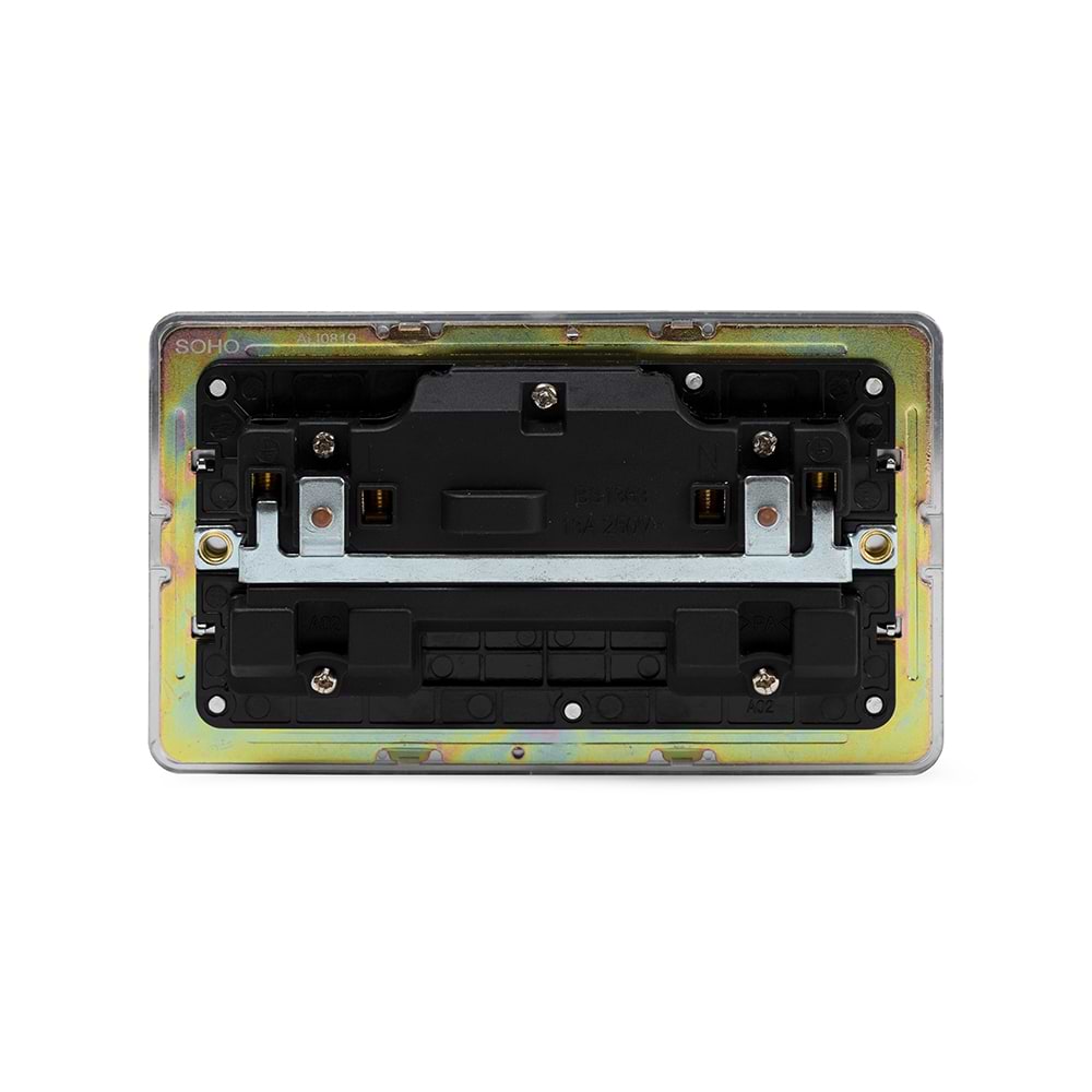 The Finsbury Collection Polished Chrome Flat Plate 13A 2 Gang Switched Socket Double Pole Blk Ins Screwless