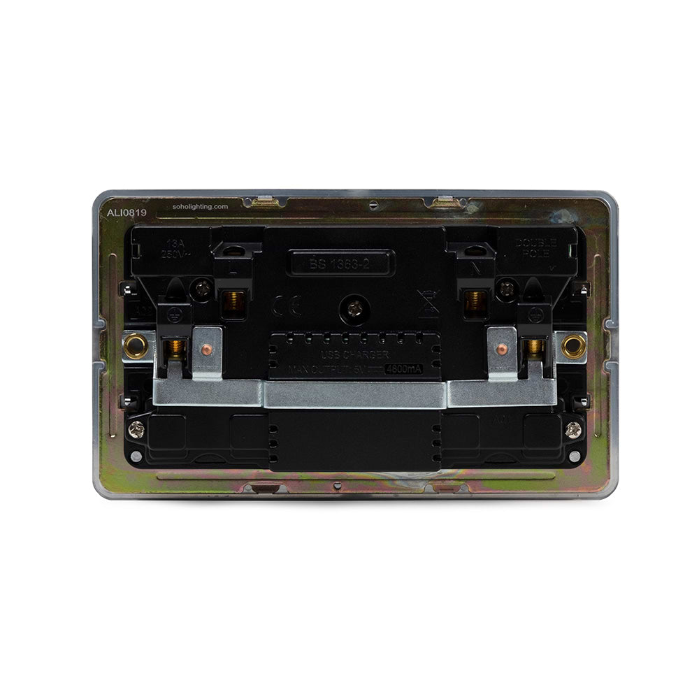 The Finsbury Collection Polished Chrome Flat Plate 2 Gang 13A DP Socket with 2 x USB-A 4.8A