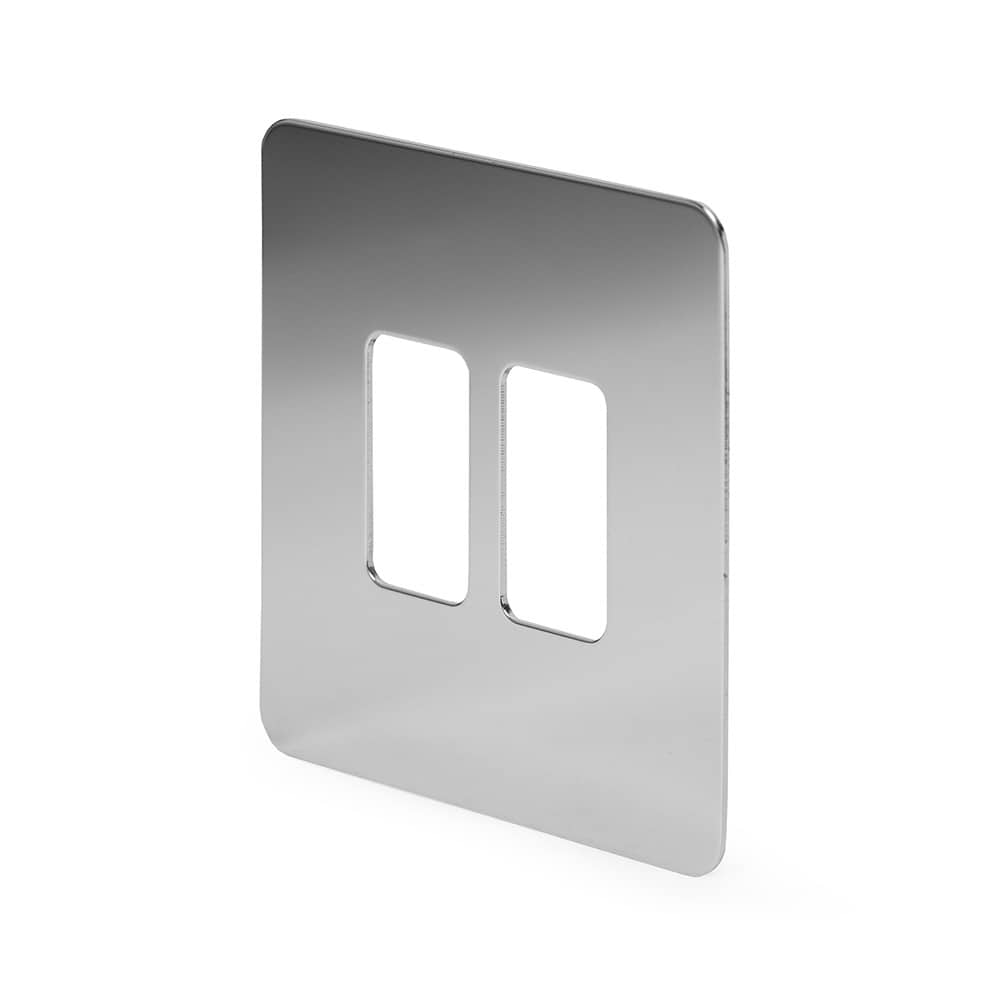 The Finsbury Collection Polished Chrome Flat Plate 2 Gang RM Rectangular Module Grid Switch Plate