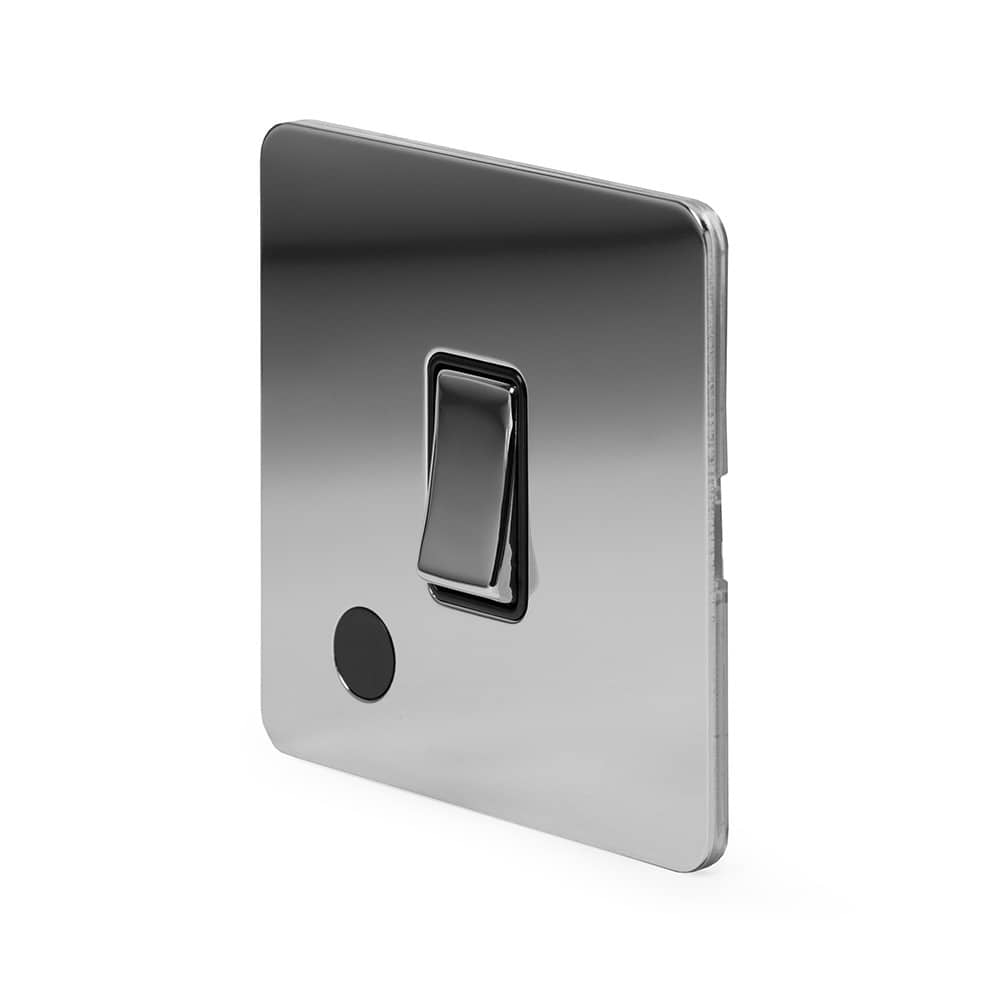 The Finsbury Collection Polished Chrome Flat Plate 20A 1 Gang Double Pole Switch Flex Outlet Blk Ins Screwless