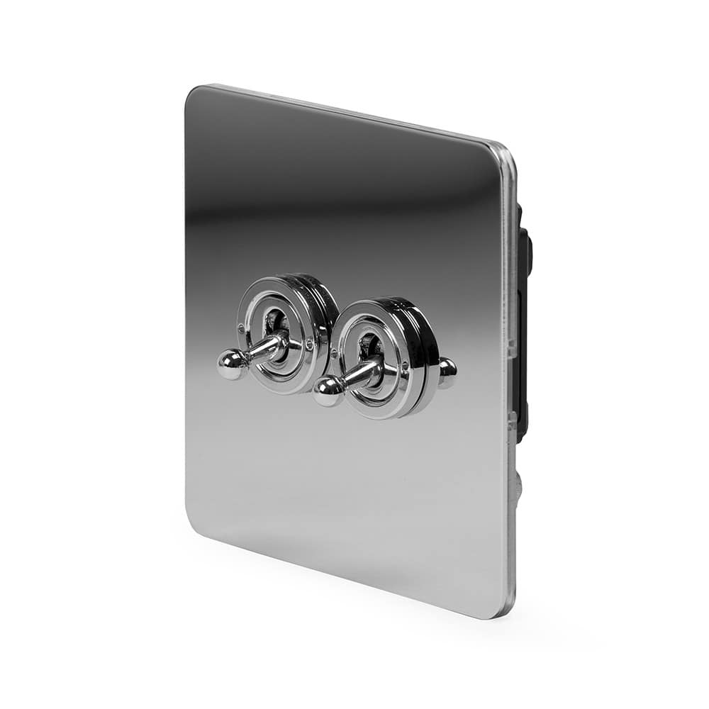 The Finsbury Collection Polished Chrome Flat Plate 20A 2 Gang 2 Way Toggle Switch Screwless