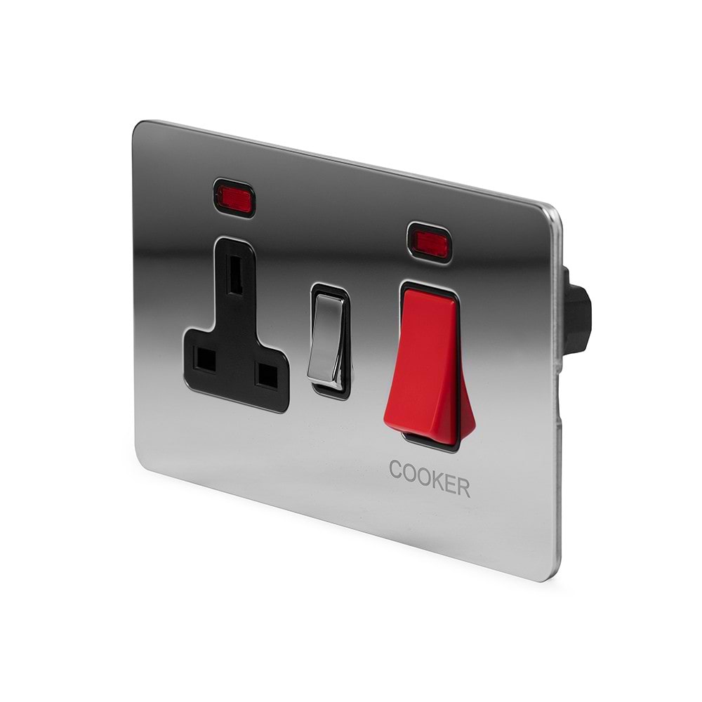 The Finsbury Collection Polished Chrome Flat Plate 45A Cooker Control Unit With Neon Blk Ins Screwless