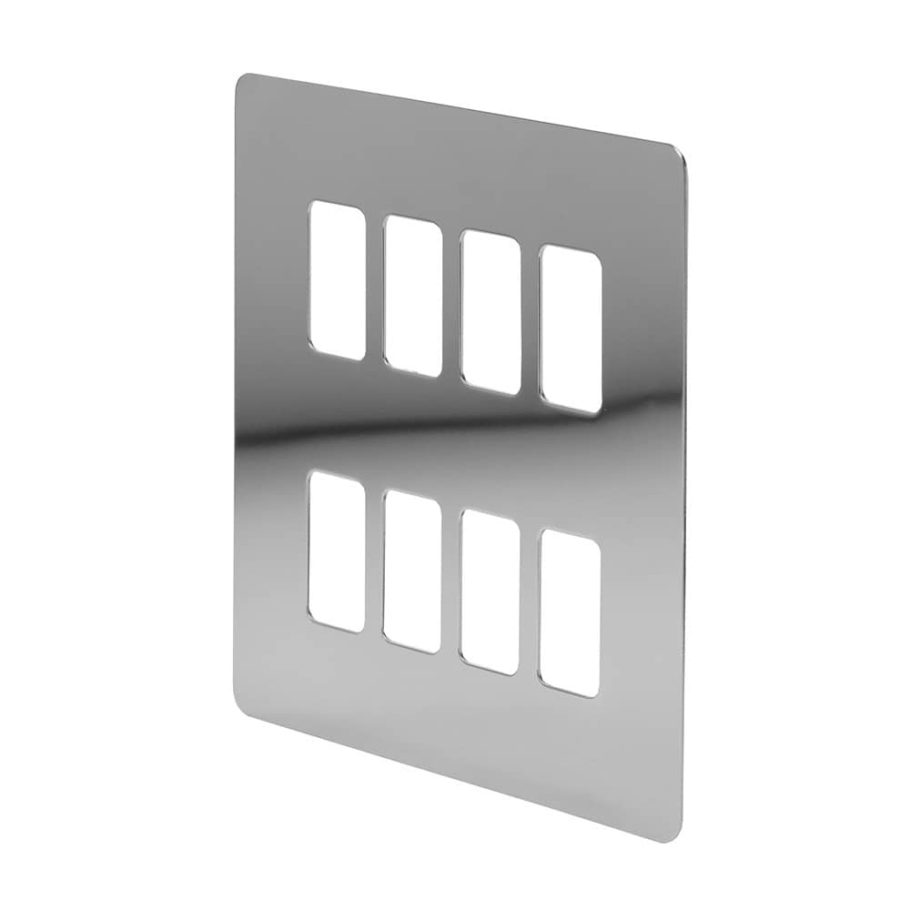 The Finsbury Collection Polished Chrome Flat Plate 8 Gang RM Rectangular Module Grid Switch Plate