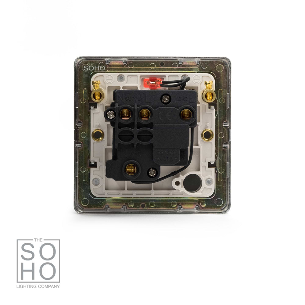 Polished Chrome is generally considered to suit modern/contemporary styles. However, this Polished chrome metal plate 13A Double Pole Switched Fuse Connection Unit With Neon with black insert also complements period styles such as art deco, arts and crafts and other homes of distinction. It looks particularly striking when set against darker finishes, wood or panelling. The Finsbury collection is a popular choice for bathrooms and kitchens as it often harmonises with other polished chrome fittings, such as taps, towel rails or appliances.