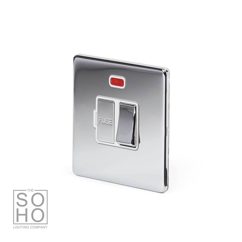 The Finsbury Collection Polished chrome Fused Connection Unit (FCU) Switched with Neon 13A DP Wht Ins Screwless