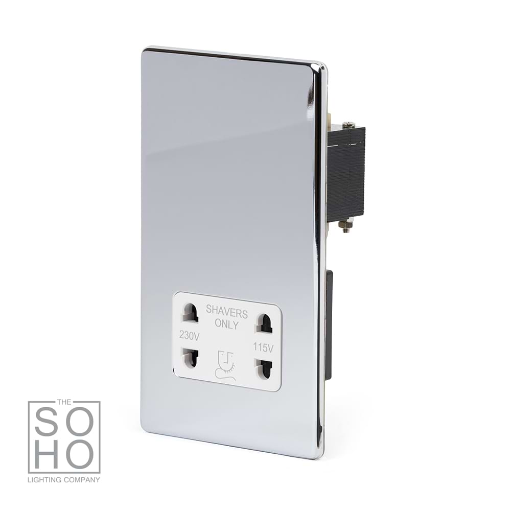 The Finsbury Collection Polished Chrome Shaver Socket Dual Voltage 115/230v Wht Ins Screwless