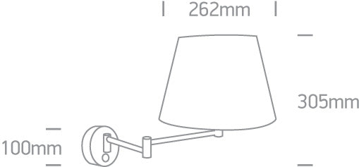 E27 Wall Hotel Range fitting with White fabric shade, IP20.