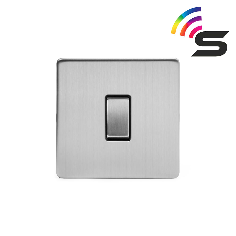 This Brushed Chrome Traditional Plate 1 Gang 150W Smart Rocker Switch has a distinctive appearance and the stylish screwless finish provides a warm tone and has the added benefit of hiding fingerprints and small blemishes. The brushed chrome finish of the sockets and switches work particularly well in modern and contemporary spaces and high traffic areas or for young families.