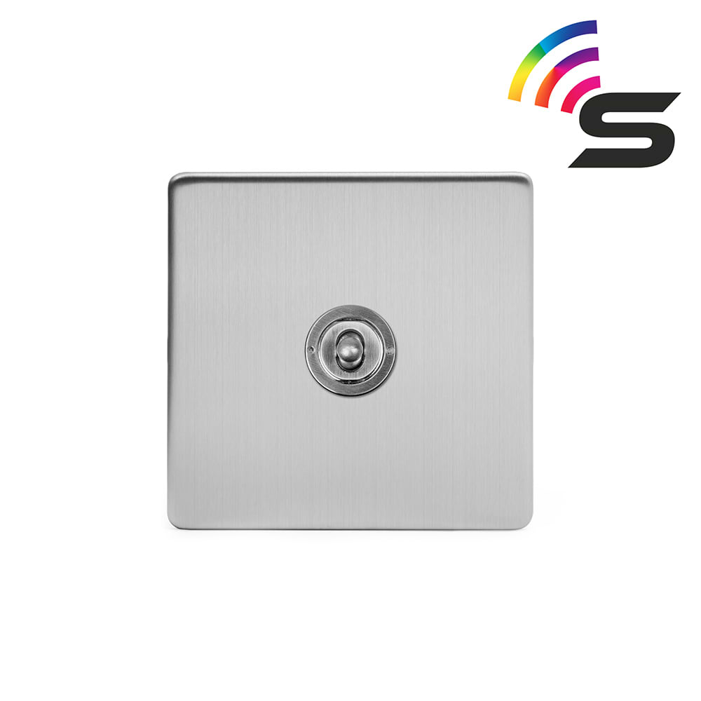 This Brushed Chrome Traditional Plate 1 Gang 150W Smart Toggle Switch has a distinctive appearance and the stylish screwless finish provides a warm tone and has the added benefit of hiding fingerprints and small blemishes. /p>
