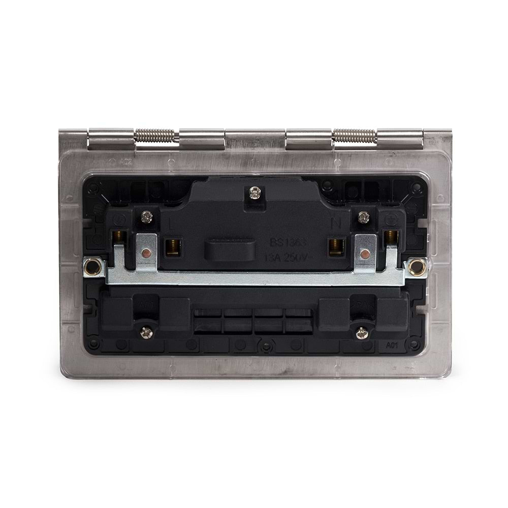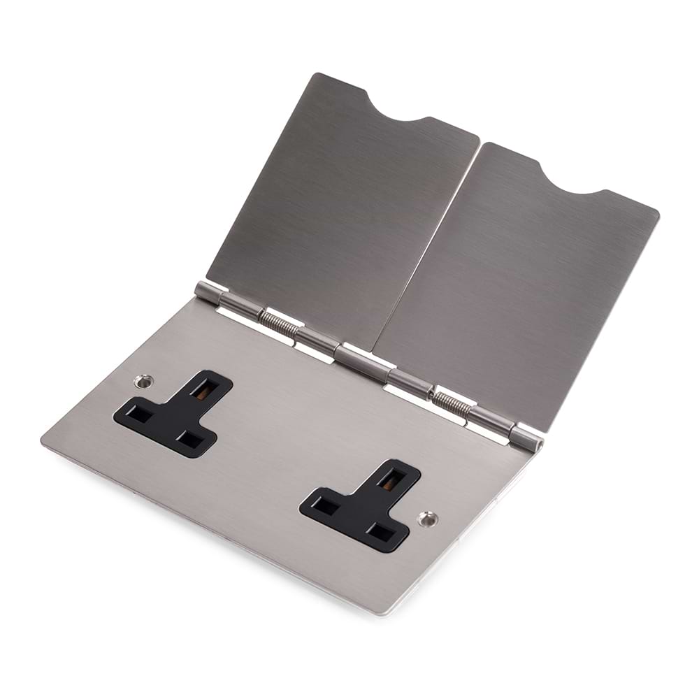 The Lombard Collection Brushed Chrome 13A 2 Gang Floor Socket Blk Ins