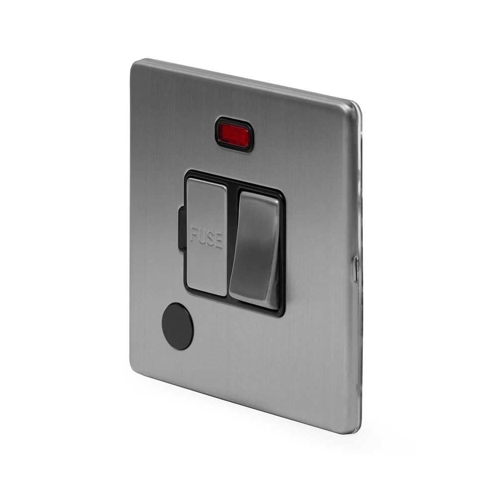 The Lombard Collection Brushed Chrome 13A Switched Fused Connection Unit (FCU) Flex Outlet With Neon Blk Ins Screwless