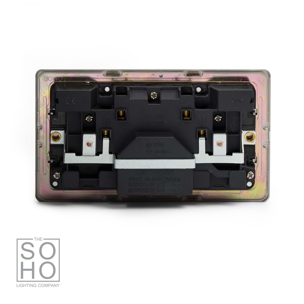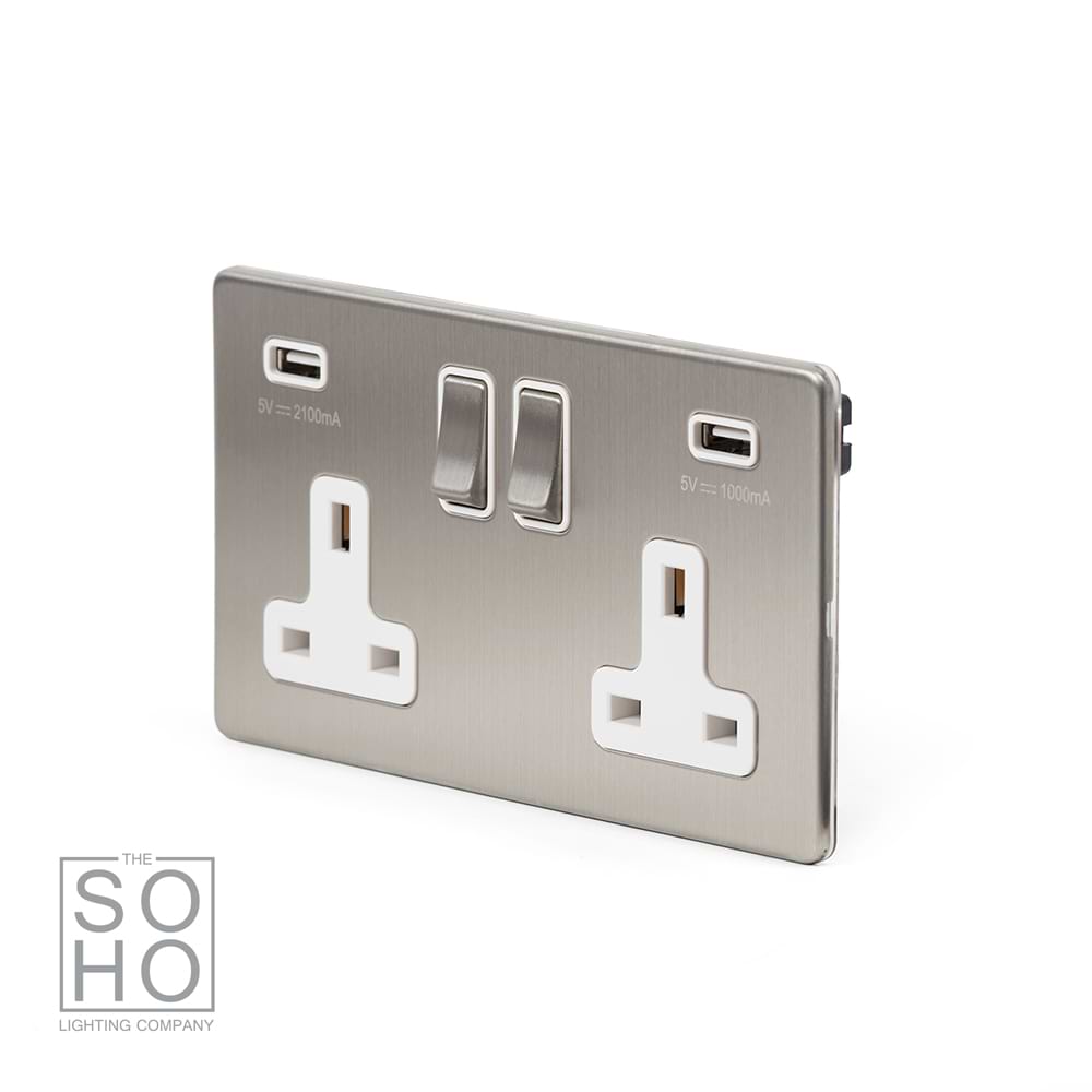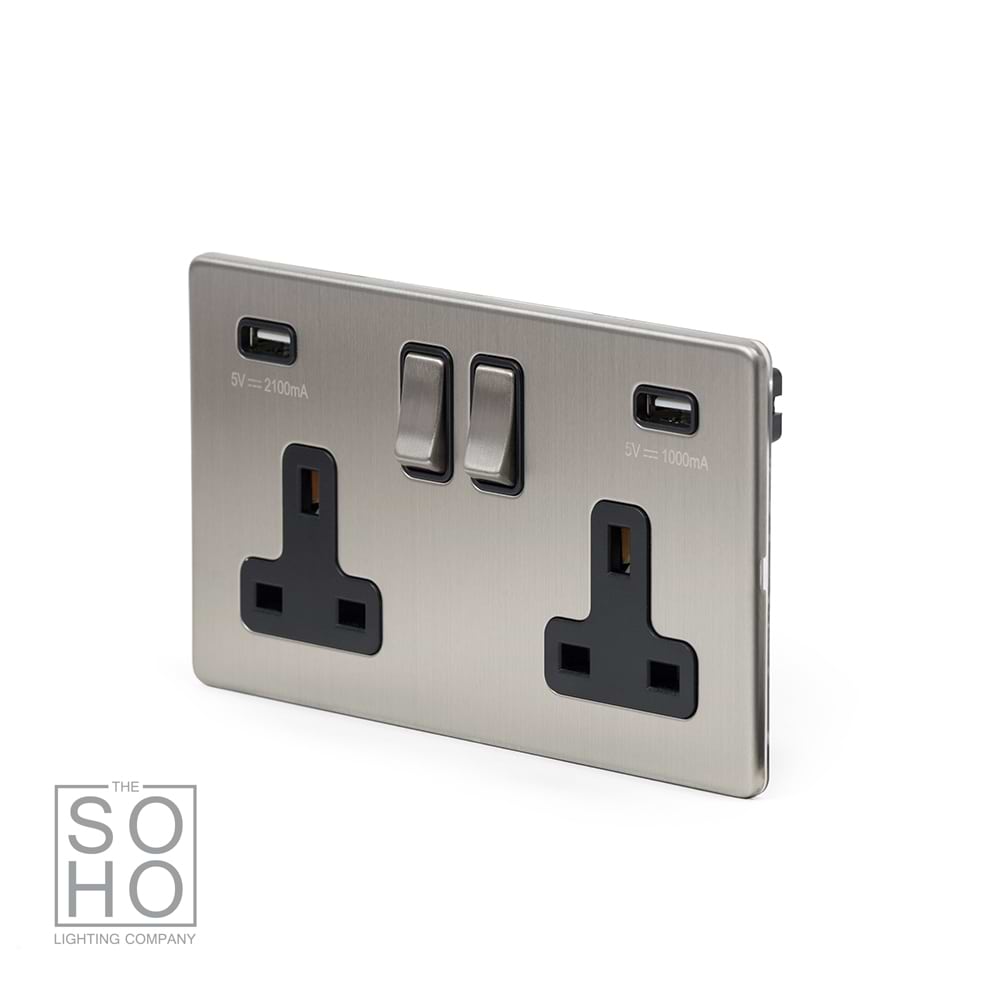 The Lombard Collection Brushed Chrome 2 Gang 13A SP Socket with 2 x USB-A 3.1A