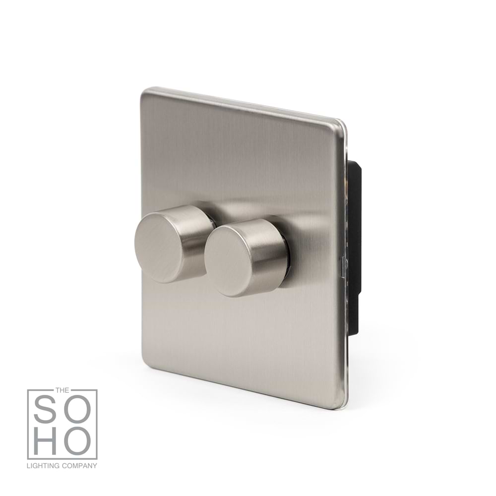 The Lombard Collection Brushed Chrome 2 Gang 2 -Way Intelligent Dimmer 150W LED (300W Halogen/Incandescent)