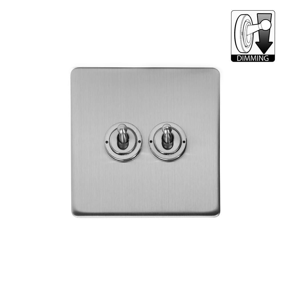The Lombard Collection Brushed Chrome 2 Gang Dimming Toggle Switch