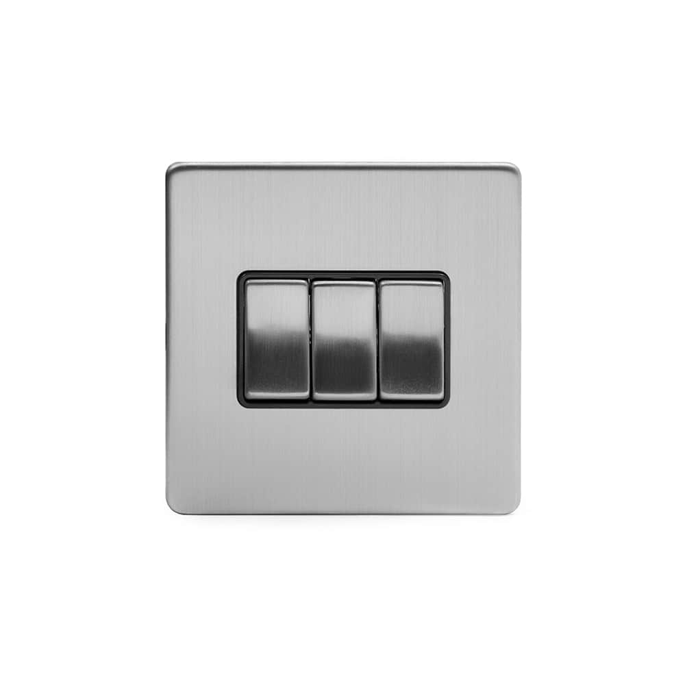 The Lombard Collection Brushed Chrome 3 Gang Intermediate Switch BLK Insert Screwless