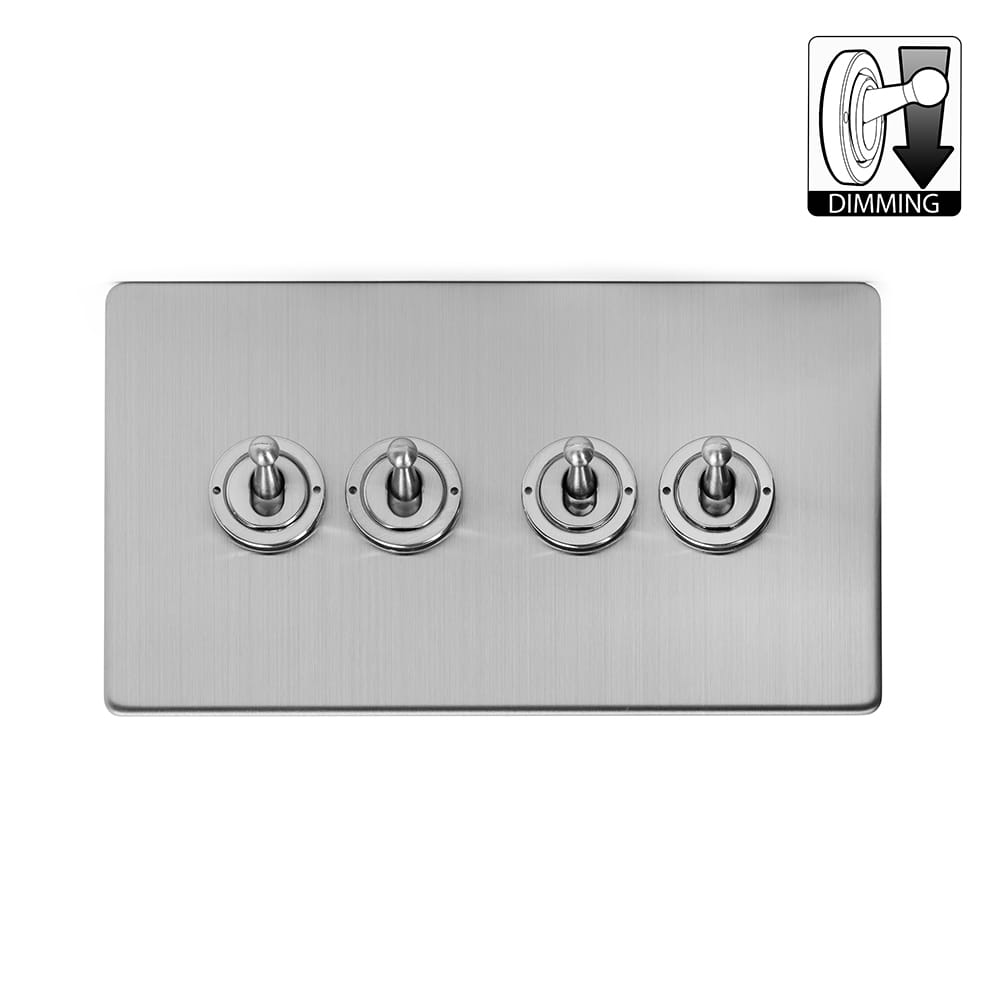 The Lombard Collection Brushed Chrome 4 Gang Dimming Toggle Switch