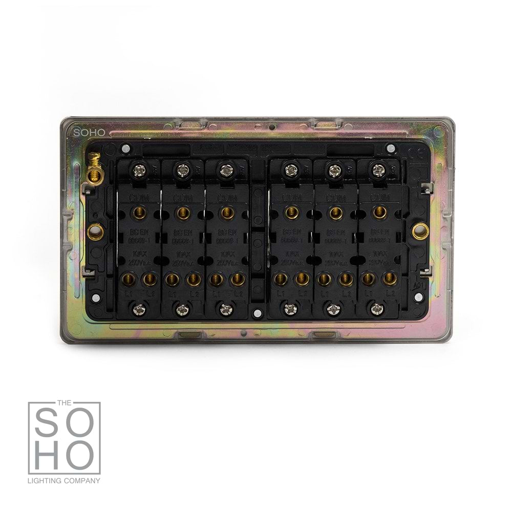 The Lombard Collection Brushed Chrome 6 Gang 2 Way 10A Light Switch Blk Ins Screwless