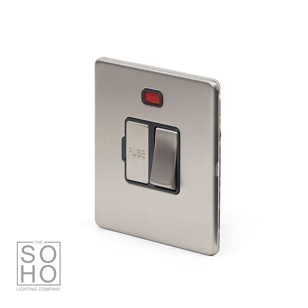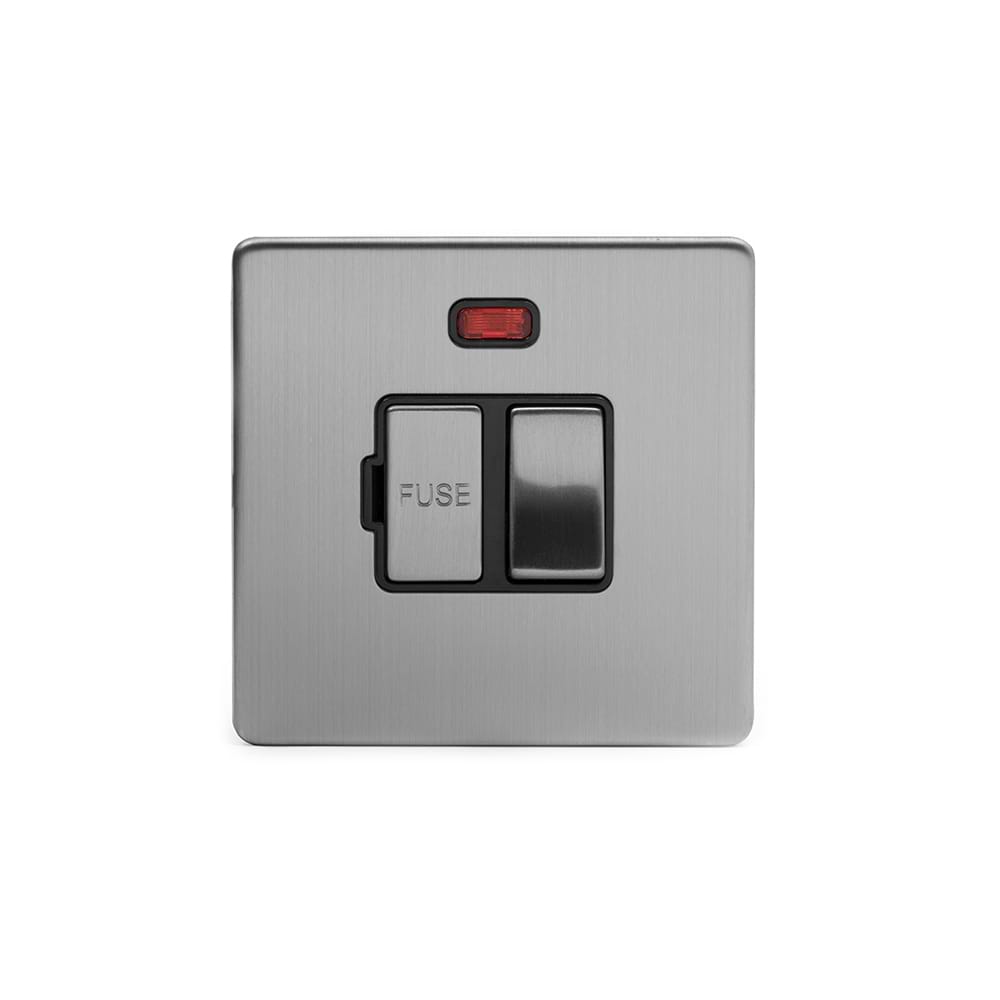 Socket and switch finishes are an important consideration for interior design and styling and should be chosen to match their surroundings. If you have brushed chrome finishes in your kitchen (unit handles/appliances) or bathroom (towel rails etc), then this Brushed chrome metal plate 13A Double Pole Switched Fuse Connection Unit With Neon will provide the perfect compliment. They work particularly well in modern and contemporary spaces and high traffic areas or for young families.