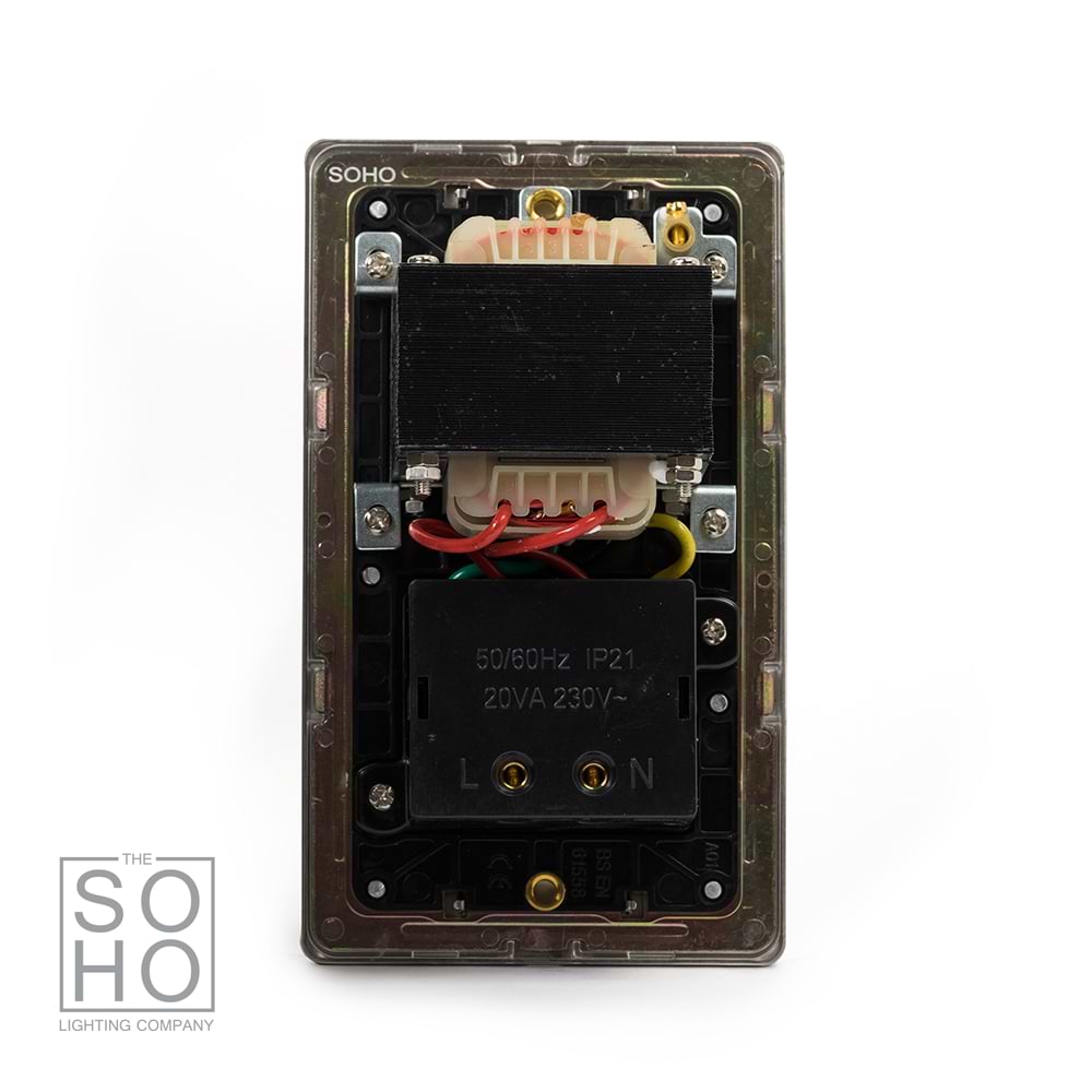 Socket and switch finishes are an important consideration for interior design and styling and should be chosen to match their surroundings. If you have brushed chrome finishes in your kitchen (unit handles/appliances) or bathroom (towel rails etc), then this Brushed Chrome 1 Gang Shaver Socket will provide the perfect compliment. They work particularly well in modern and contemporary spaces and high traffic areas or for young families.