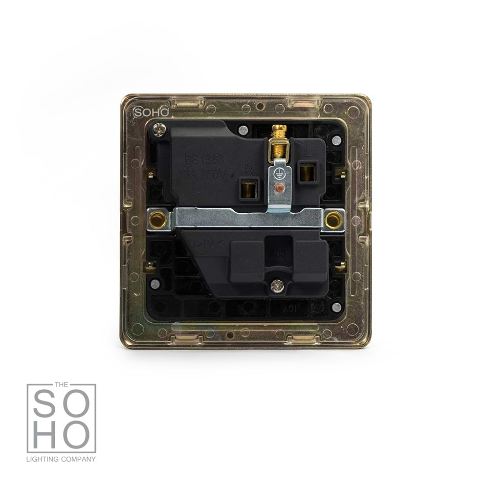 The Savoy Collection Brushed Brass 1 Gang DP Socket Black Ins 13A Screwless