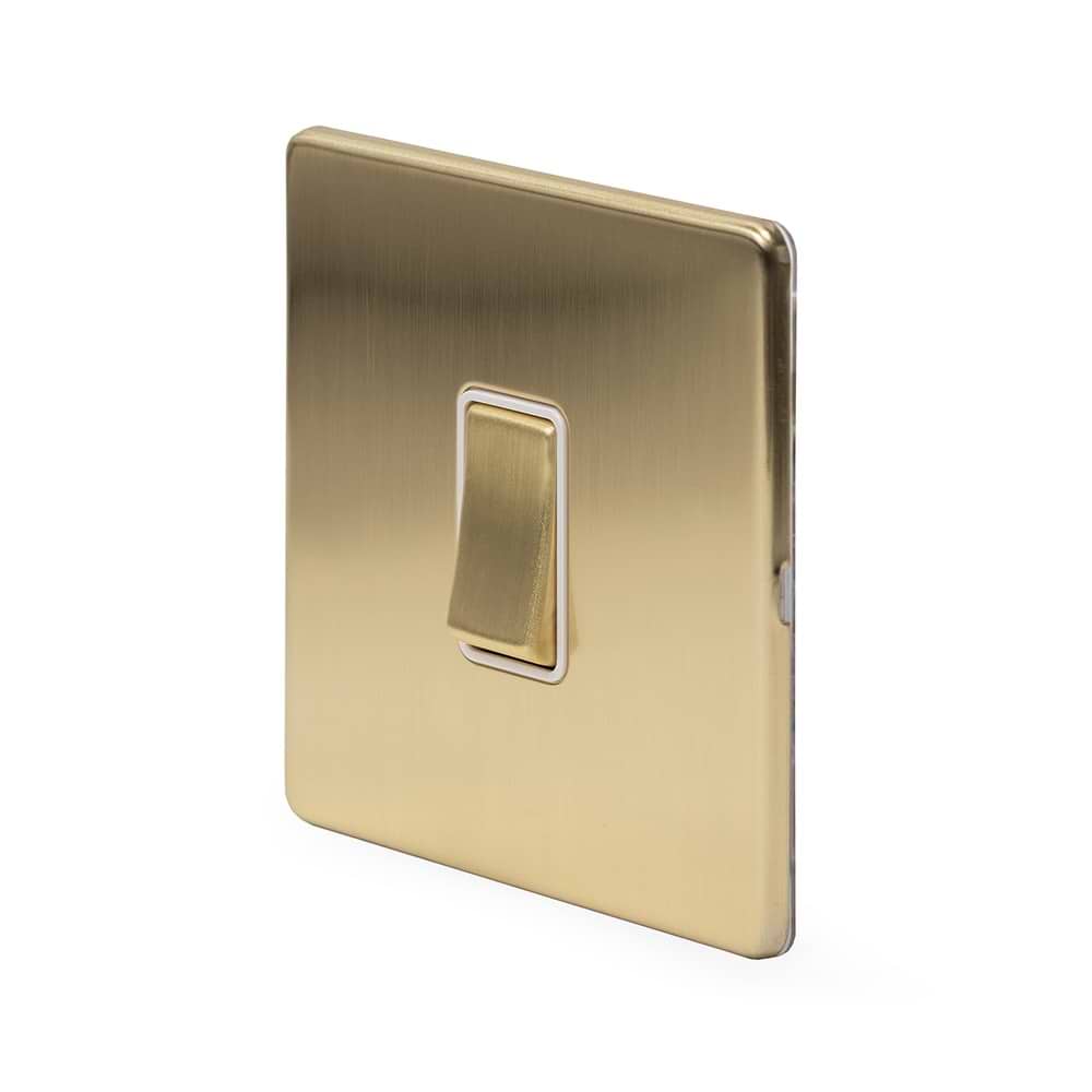 The Savoy Collection Brushed Brass 1 Gang Intermediate Switch Wht Ins Screwless