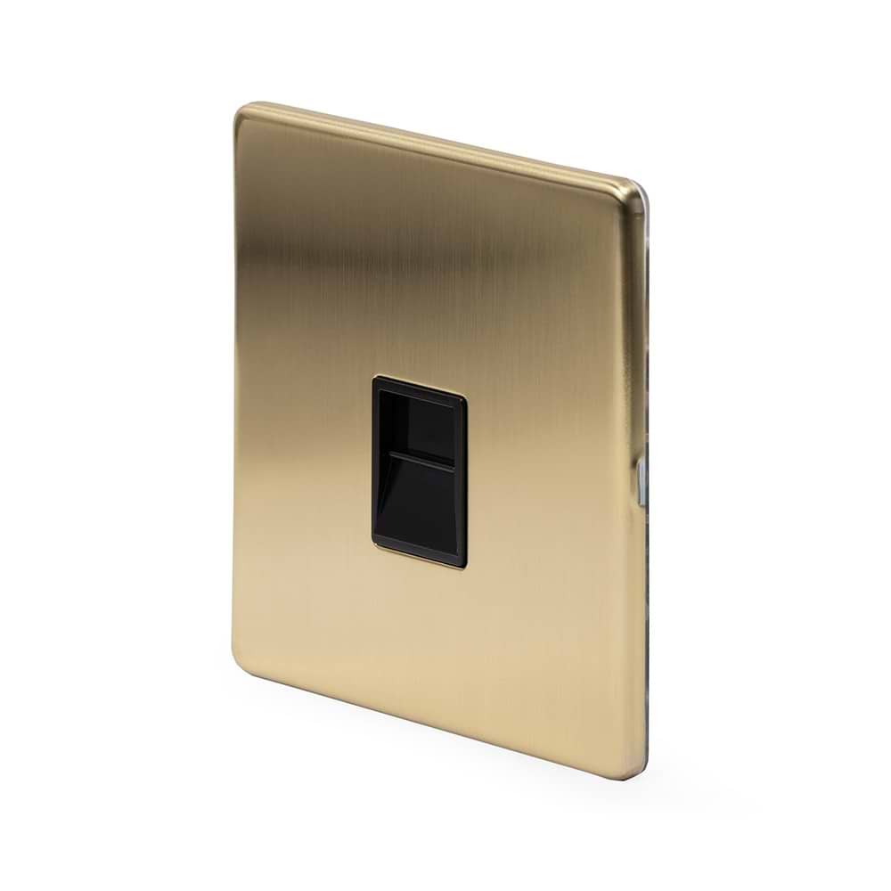 The Savoy Collection Brushed Brass 1 Gang Telephone Secondary (Slave) Socket,BT Black Insert Screwless