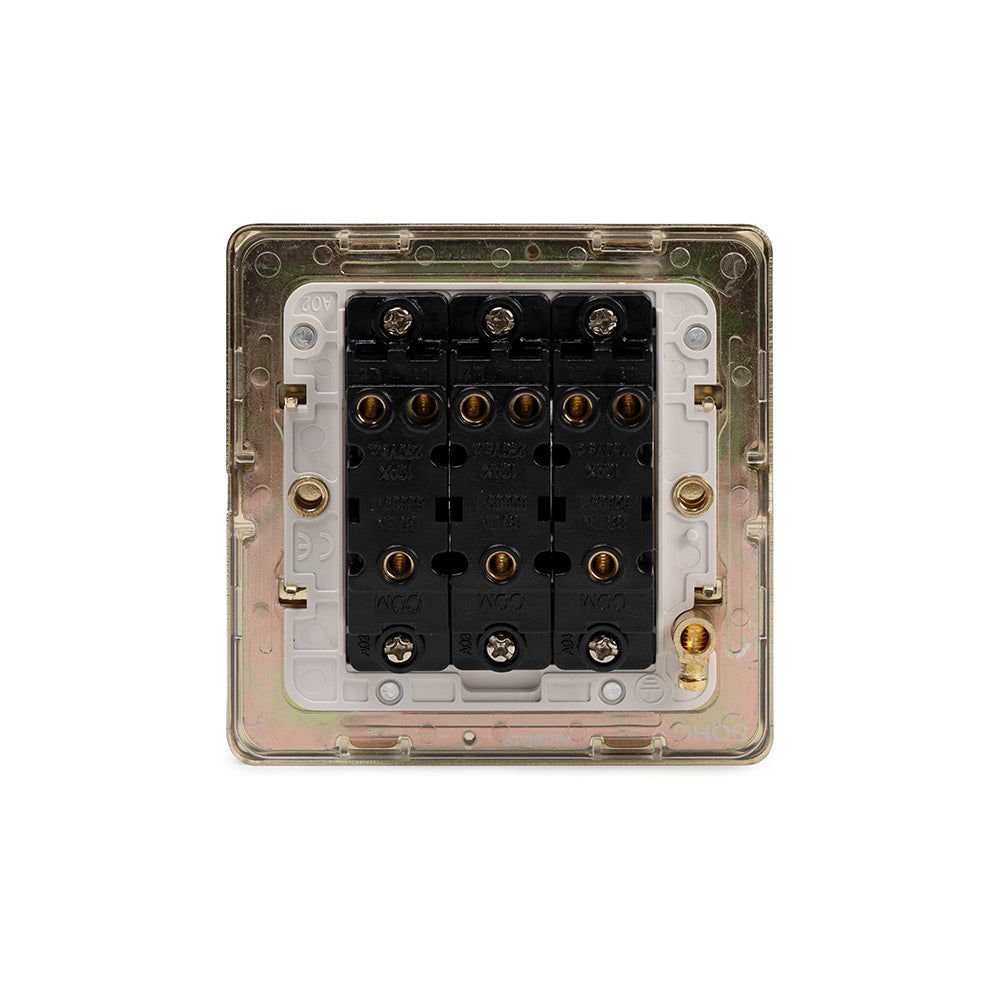 The Savoy Collection Brushed Brass 10A 3 Gang 2 Way Switch Wht Ins Screwless