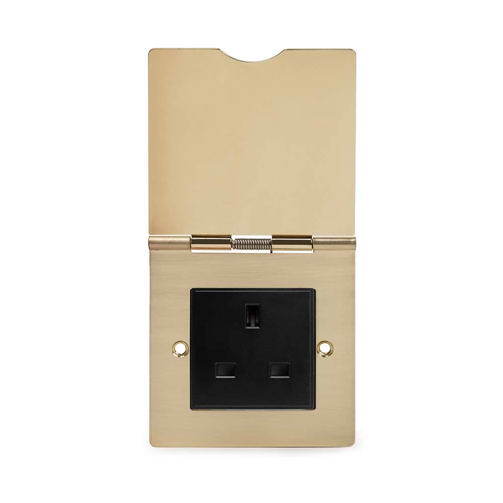 The Savoy Collection Brushed Brass 13A Euromod Floor Outlet Socket 1 Gang Blk Ins