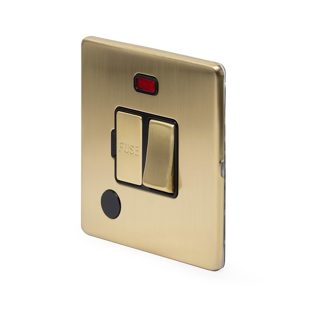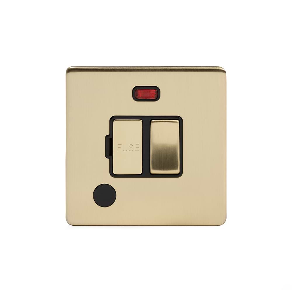The Savoy Collection Brushed Brass 13A Switched Fused Connection Unit (FCU) Flex Outlet With Neon Black Insert Screwless
