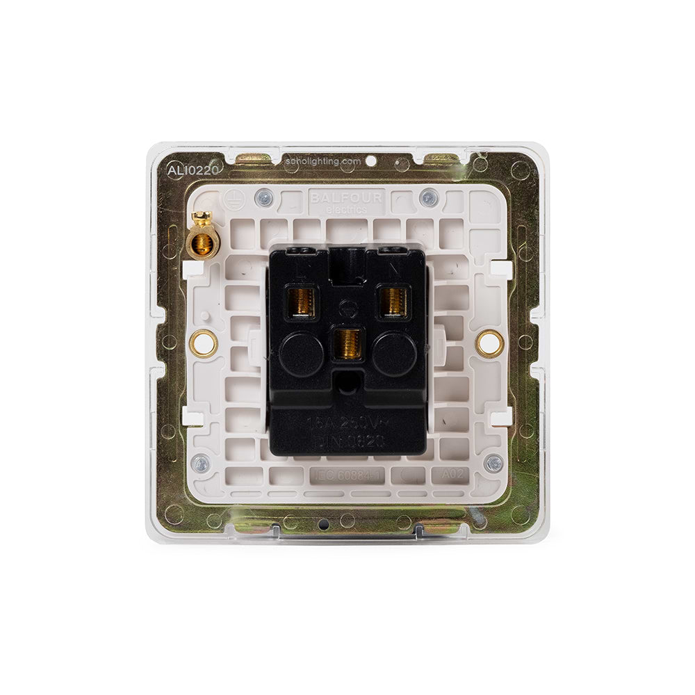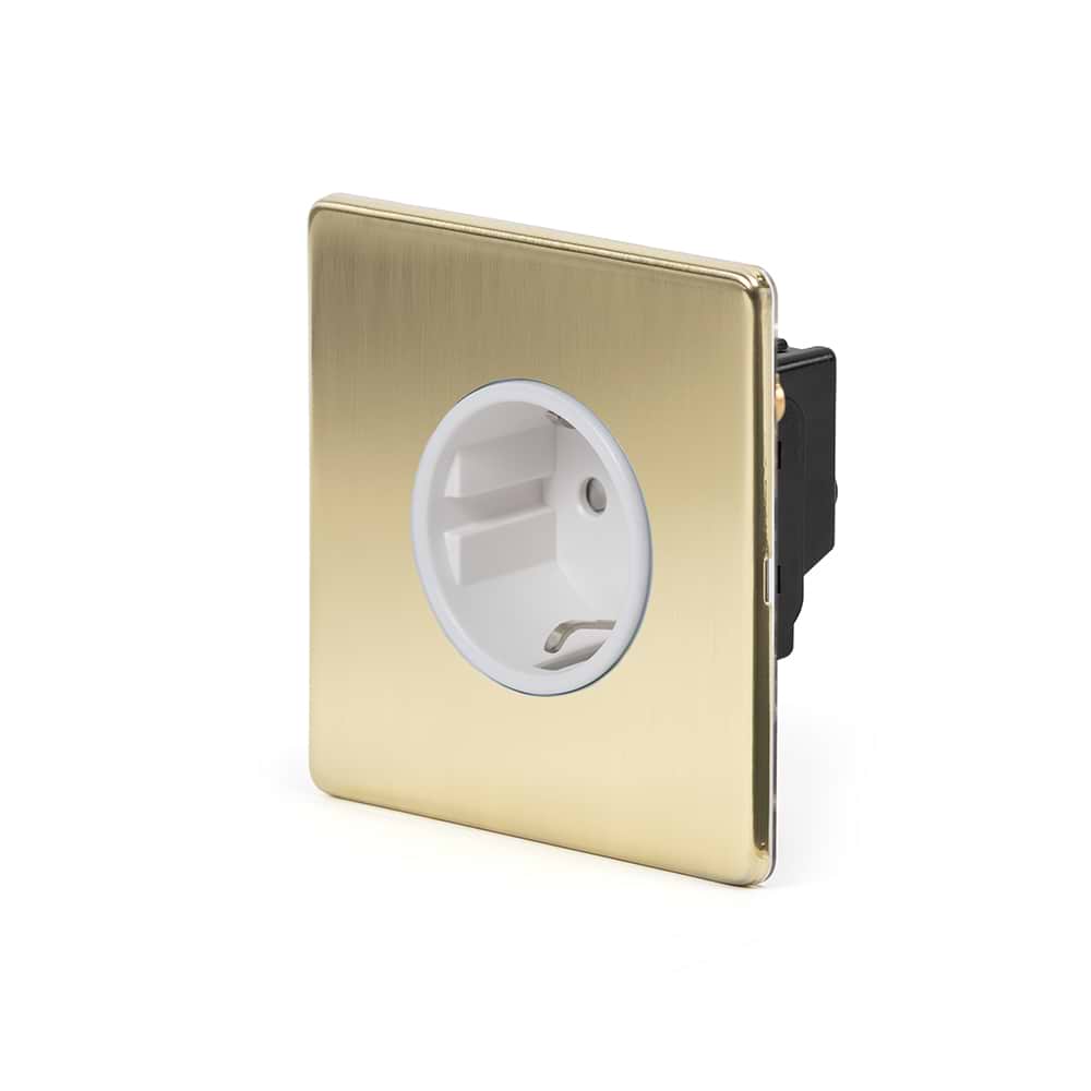 The Savoy Collection Brushed Brass 16A 1 Gang Euro Schuko Socket Wht Ins Screwless