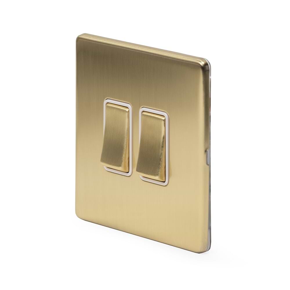The Savoy Collection Brushed Brass 2 Gang Intermediate Switch Wht Ins Screwless