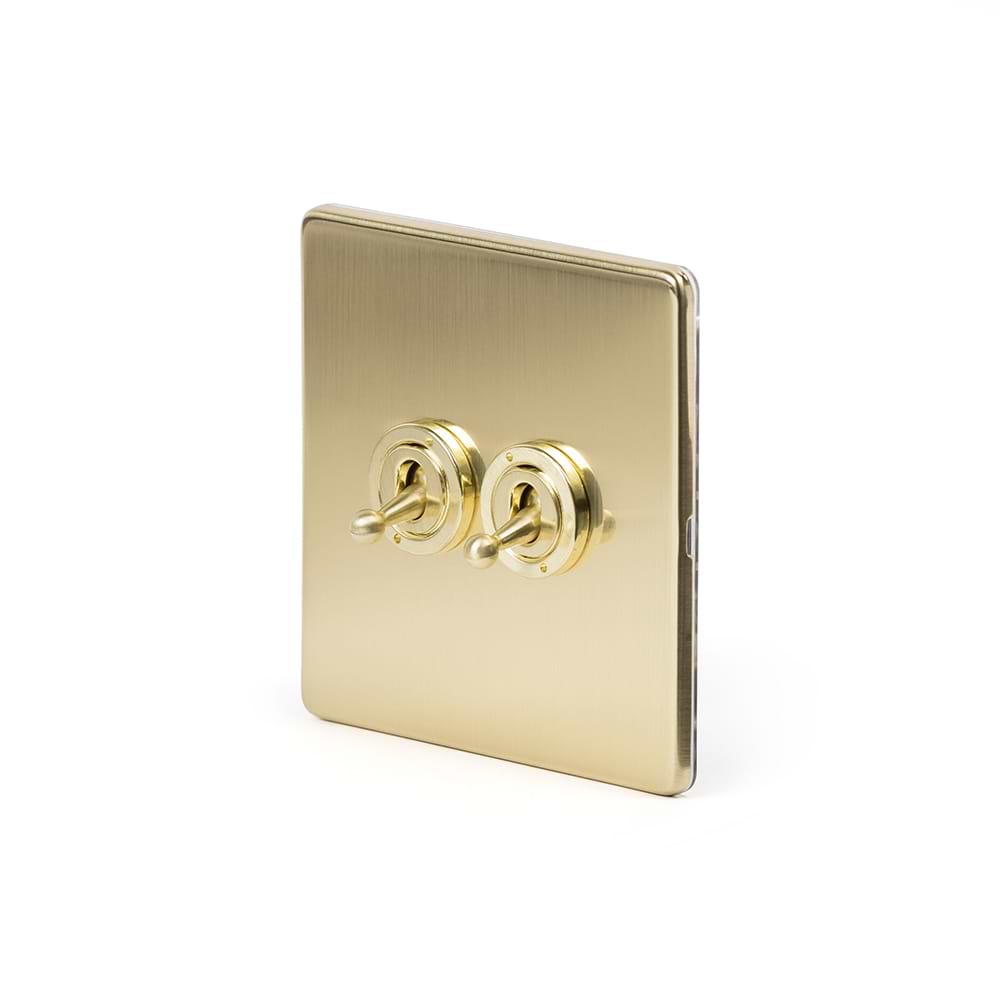 The Savoy Collection Brushed Brass 2 Gang Intermediate Toggle Switch Screwless
