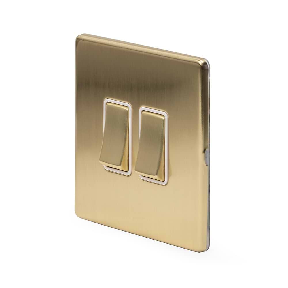 The Savoy Collection Brushed Brass 2 Gang Light Switch 2-Way 10A White Inserts