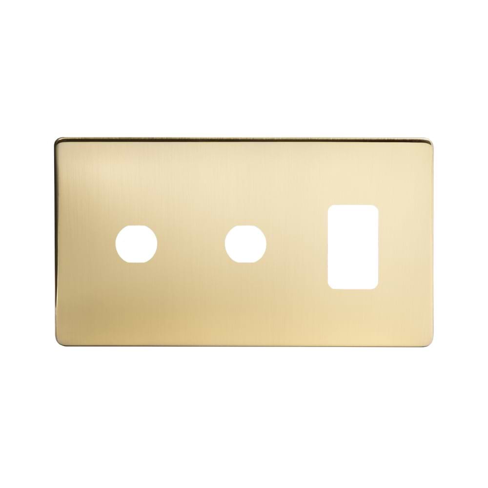 The Savoy Collection Brushed Brass 3 Gang 1RM+2CM Dual Module Grid Switch Plate