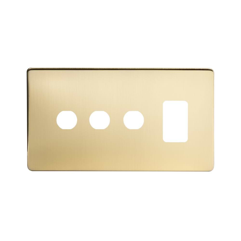 The Savoy Collection Brushed Brass 4 Gang 1RM+3CM Dual Module Grid Switch Plate