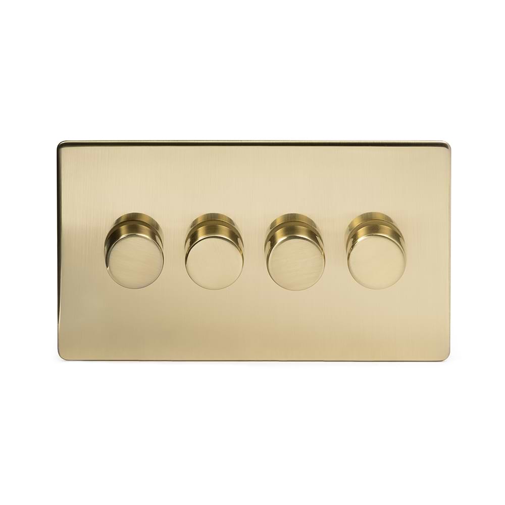 The Savoy Collection Brushed Brass 4 Gang 2 -Way Intelligent Dimmer 150W LED (300w Halogen/Incandescent)