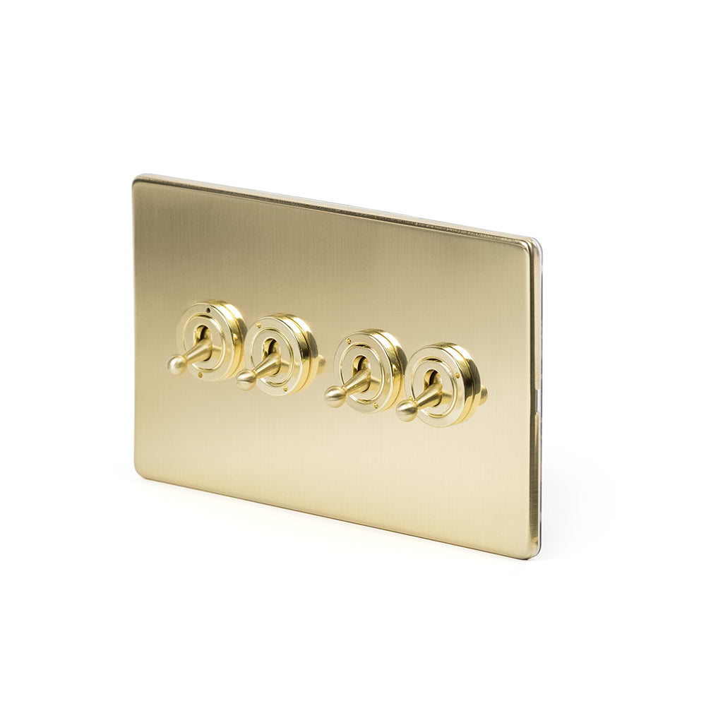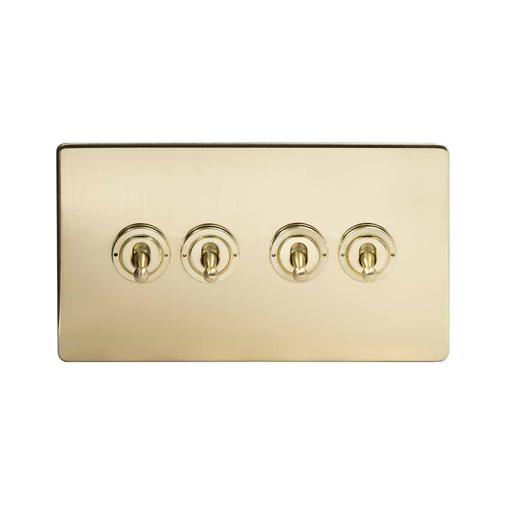 The Savoy Collection Brushed Brass 4 Gang Intermediate Toggle Switch Screwless
