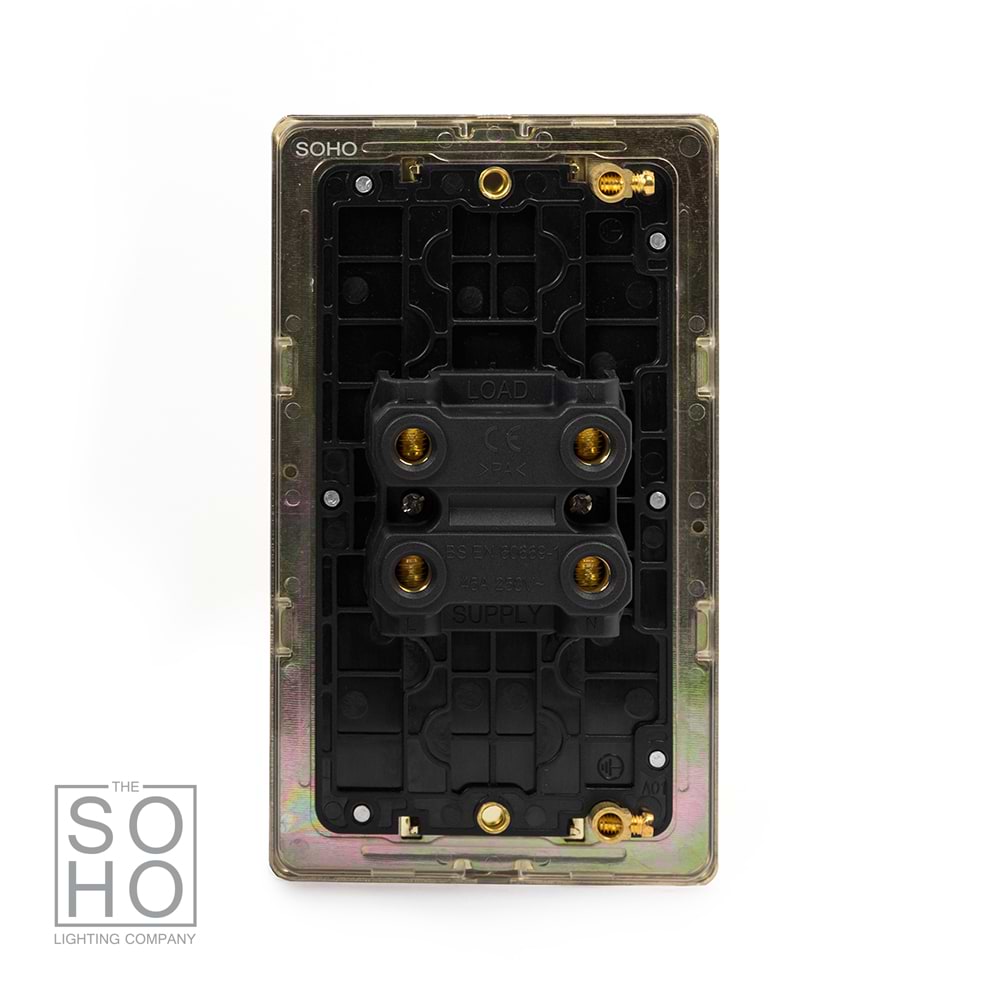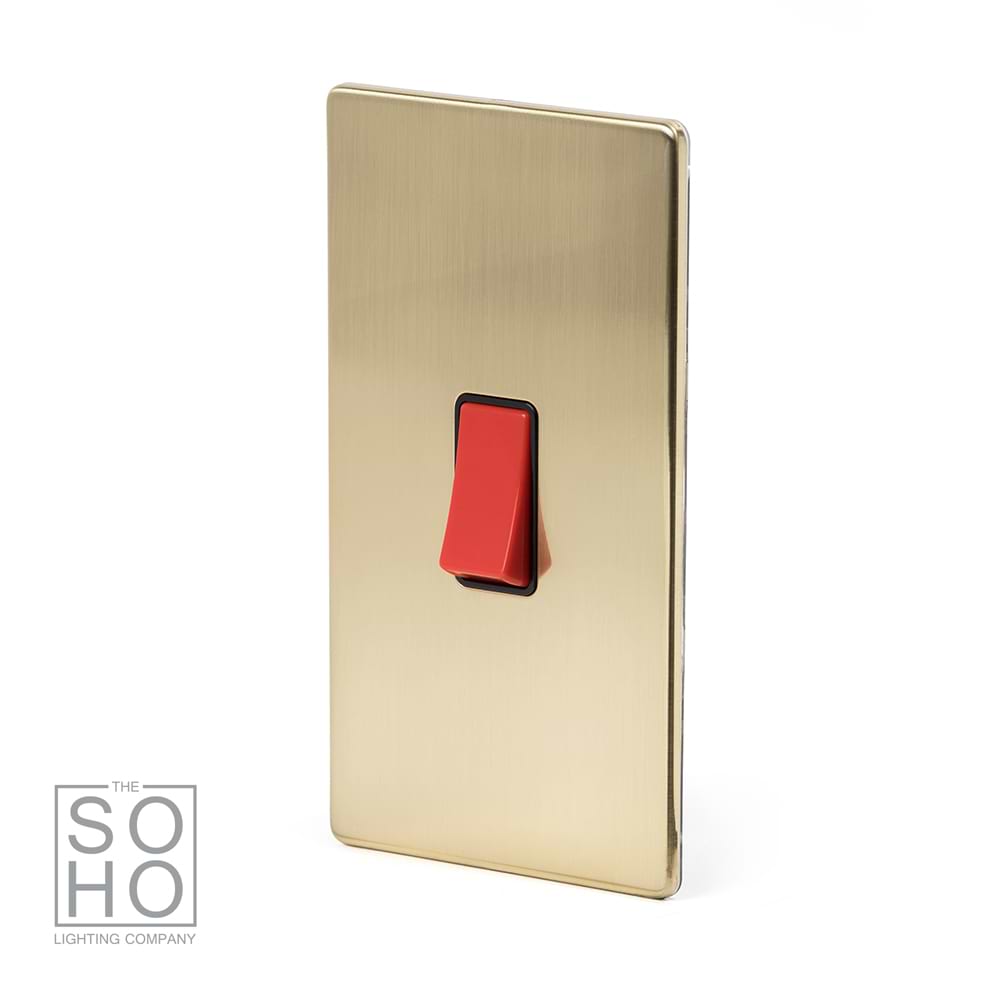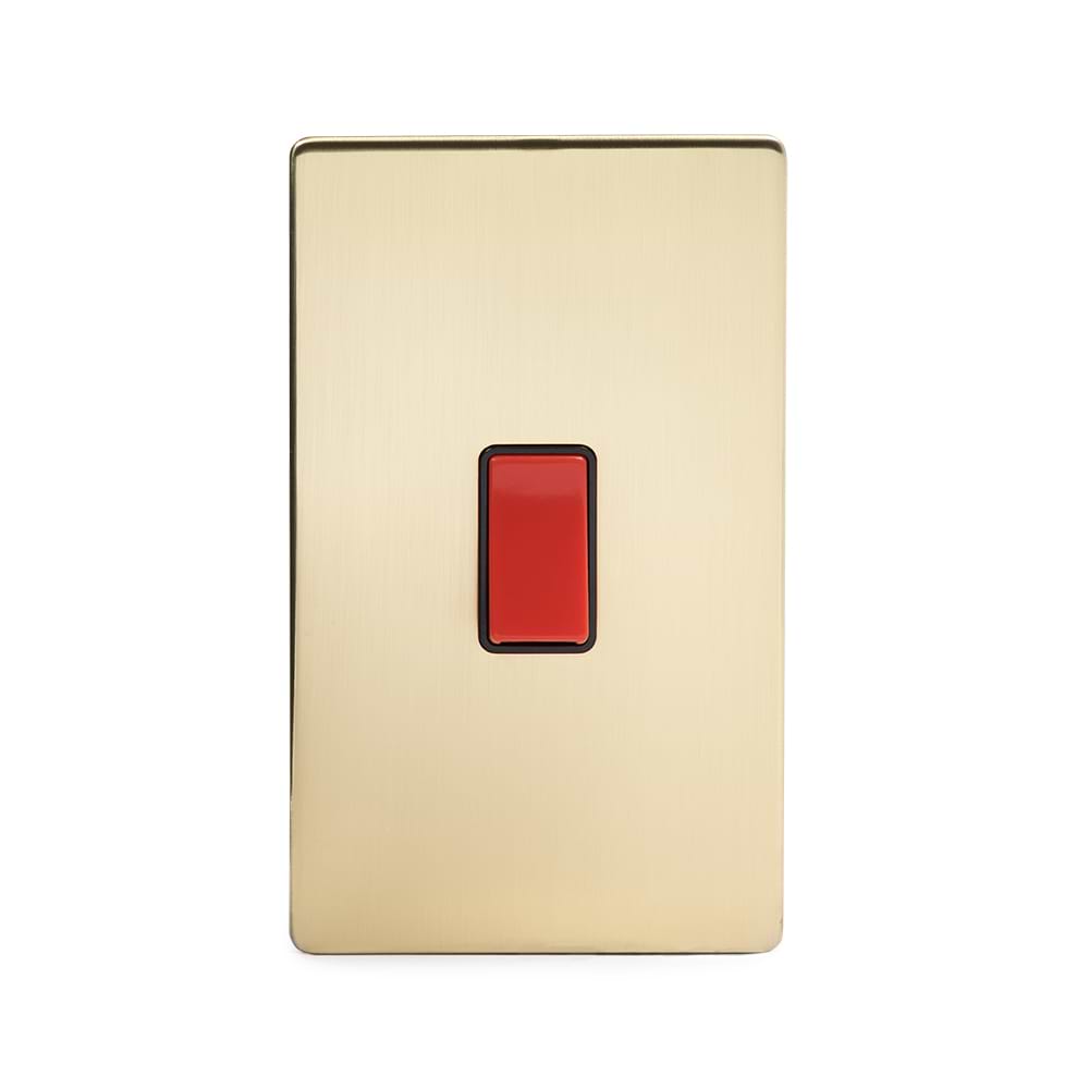 The Savoy Collection Brushed Brass 45A 1 Gang Double Pole Switch Large Plate Blk Ins Screwless