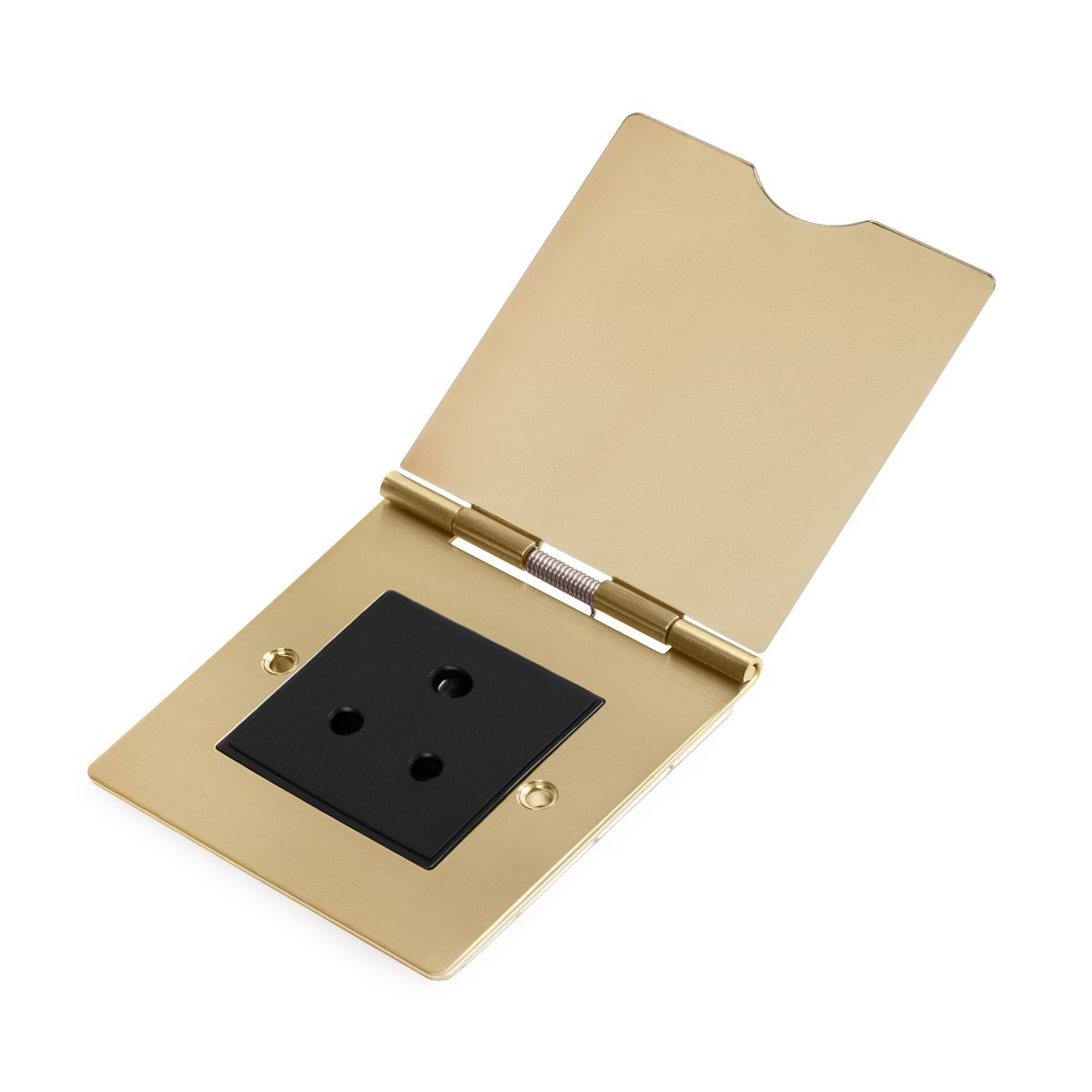 This Brushed Brass and black 5 Amp Floor Socket has a distinctive appearance and the stylish finish.